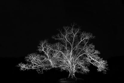 달빛은 잠이 들고 차가운 냉기에 흔들리는 별빛 가득한 어두운 겨울 밤, 외딴 시골 마을 어귀에 서 있는 앙상한 가지를 드러낸 헐벗은 당산나무.